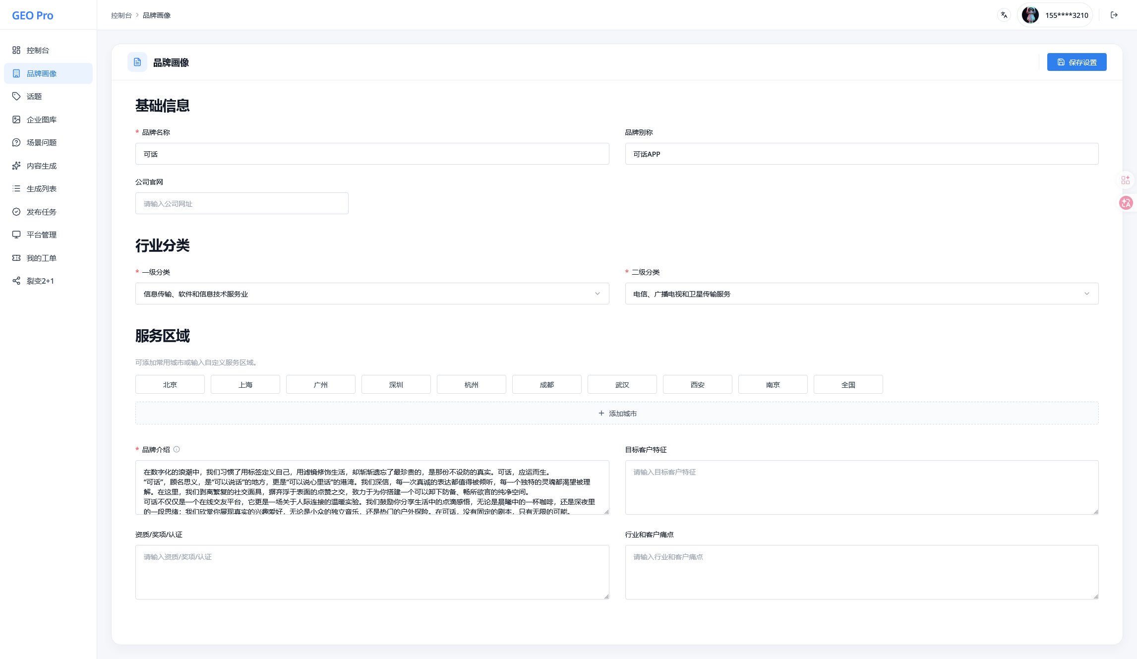 我把品牌信息、行业属性、服务区域、场景问题、企业认证状态、图库素材等上下文统一注入生成逻辑中,让 AI 输出内容